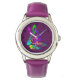 Een leuk en kleurrijk ontwerp met een treble clef muzieknoot in heldere regenboog popping kleuren gedaan in een artistieke verfspatten stijl, zeer cool en trendy en gewoon poppen op de zwarte achtergrond. Fantastisch modern polshorloge, ideaal cadeau voor een muzikant of muziekfan.