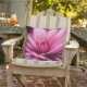 Deze fel roze dahlia, kussen floral front en abstracte rug, is een levendig en levendig stuk met accent. Een roze mahlia is een mooie bloem met bladen van verschillende roze tinten. Het bestaat uit meerdere lagen van bladen, meestal met de binnenste laag die een heldere, levendige schaduw is en de buitenste laag met een zachtere tint. Het middelpunt van de bloesem wordt in een diepere roze schaduw gemarkeerd, die een gevoel van diepte en dimensie creëert. Dit kunstwerk zou perfect zijn om wat kleur en leven aan om het even welke achtertuin oase toe te voegen.