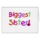 De grootste Zuster T-shirts, mokken, canvas tassen, knoppen en nog veel meer, perfect voor de oudste zuster, is voorzien van een helder roze, paarse, groene en oranje tekstvormgeving!