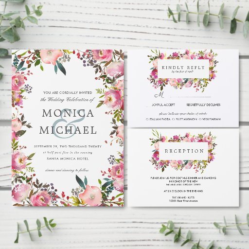 Chique bloementafelnummerkaarten zijn voorzien van een lijst van waterverf roze rozen, pioenen en bloemetjes, waardoor je tafelnummer in het wit wordt gezet. Personaliseer met uw namen en trouwdatum, of noem elke tafel voor een extra persoonlijke touch. Het ontwerp herhaalt zich aan de achterkant. Coördineert met onze Brilliant Bloom bruiloft uitnodiging suite.