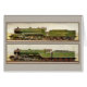 Twee Britse stoomtreinen in een oud lijst met wereldcadeaus. Geweldig geschenk voor een liefhebber van het tijdperk van stoom of treinen van over de hele wereld