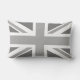 Lumbar-kussen van 33 x 53 cm, waarop de vlag van de Britse Union Jack Flag in een reeks grays te zien is. Het afbeelding is aan beide zijden van het kussen gedrukt.