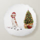 Een mooi brittair hondenras zit naast een versierde kerstboom. De pakketten wachten op opening! De hond draagt een kersthoed met een rode boeg stropdas. Grappig geschenk om dit vakantieseizoen te sturen!