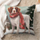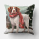 Brittany Spaniel-hond in de sneeuw met Kerstmis Kussen