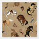 Een geworpen patroon met cowboys in kleurrijke kleding en geringde kloven die worden gegooid door bucking broncos.
