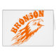 Bronson Eagles t-shirts, mokken, canvas tassen, stickers, knoppen en veel meer aanpasbare producten die voorzien zijn van een oranje Eagle-hoofdontwerp met vlammen en het woord Bronson in een oranje grijze lettertype.