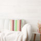 Stomme witte kussens met roze, bruine, bruine, Bourgogne en groene poka-stippen en strepen.