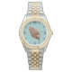 Dit horloge toont een foto van een vrouwen eend die haar bruine veren prachtig mooi shows, op een blauwgroen achtergrond. Zie mijn winkel voor meer eendenfotografie. Origineel kunstwerk van Lucky Wings