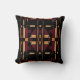 Inspired by the Southwest/Native American design style (with Mediterranean influence), this abstract, geometric motif involves a large tile horizontal pattern composed of various shapes in dark brown and tan on a black background. This is an intense, artistic, and contemporary design, which evokes a tribal art or mosaic tile pattern, and contributes a comfortable vibe for living area, bedroom, workspace, terrace, or patio decor, offering a feeling of warmth and relaxation. There are many possibilities for interior design with this accent piece, which fits into numerous styles of decor (innovative to traditional) from retro/vintage to country farmhouse to modern ranch to rustic hacienda to urban loft and high rise.