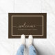 Elegante bruine taupe script familienaam welkom deurmat Elegante welkom deurmat met een taupe script op een bruine achtergrond. Personaliseer met uw familienaam of tekst. BrownTaupe, script, welkom, familienaam, nieuwe huiseigenaren, luxe, housewarming, moderne elegante chique stijlvol, achternaam,