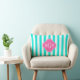 Brt Aqua Wt Stripe HotPink#2 Quatrefoil 3 Monogram Kussen