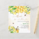 Een stijlvolle witte en gouden waterkleurige achtergrond. Versierd met hommels, smeltende honing, een honingraat met gele bloemen, bloemen en een honingpot. Met de tekst: Bruid te schrijven met een modern handgeschreven stijlscript met harten. Personaliseer en voeg de naam van de bruid toe. 1 vel = 1 uitnodiging afgedrukt rand tot rand.