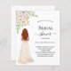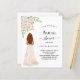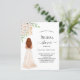 Een witte achtergrond. Een bruid, witte bloemen en groen. Personaliseer en voeg een naam en feestdetails toe. 1 vel = 1 uitnodiging afgedrukt rand tot rand.