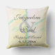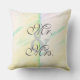 Romantische zachte roze, groene, gele, blauwe tropische aquarel achtergrond omkeerbare trouwkussen met de namen van het bruidspaar en de trouwdatum. Voorzijde van het kussen heeft de tekst Meneer en Mevrouw in grijze tekst. Personaliseer met uw trouwdetails. Achterkant van het kussen heeft de tekst, Meneer & Mevrouw. Mooie trouwcadeau voor de pasgetrouwden. Origineel Kunstwerk Ontwerp door TamiraZDesigns.