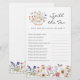 Laat je speciale dag opbloeien met dit Bruids-"Spill The Tea"-spel! Dit ontwerp bevat prachtige, handgeschilderde watercolorbloemen in tinten diep paars, stoffig blauw en roze met saliegroene beplanting. Of je nu een tuinfeest of een gezellige, intieme bijeenkomst organiseert, dit mooie bruidsdouche-"Spill The Tea"-spelontwerp zal een speciale charme aan je evenement toevoegen. Vind overeenkomende producten in de Watercolor Wildflower Tea Party Bruidsdouche.