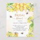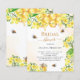 Een stijlvolle witte en gouden watercolor achtergrond. Versierd met hommels, gesmolten honing en honingraat met gele bloemen, bloesems en een honingpot. Met de tekst: Bruidsshower geschreven in een modern handgeschreven lettertype. Personaliseer en voeg de naam van de bruid toe om te zijn. Gouden en zwarte letters.