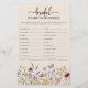 Bruidswoord-ontwar-spel. - Dit stijlvolle en elegante bruidsshower-spel bevat prachtige, met de hand geschilderde waterverf-wilde bloemen, gerangschikt als een mooi kader en elegant kalligrafisch schrift. De achterkant heeft een mooi bijpassend patroon. (Antwoordensleutel - honingmoon, receptie, bruidegom, bruidsboeket, eerste dans, uitnodiging, echtgenoot, huwelijk, bruidsjonkers, bruidsmeisje, liefde, bruidsshower, bewaar de datum, verloofd, echtgenote, huwelijk, kus de bruid, bruid die komen gaat, de knoop doorhakken, huwelijksgeluk)