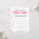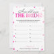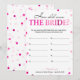 Dit moderne "How Old Was the Bride"-spel heeft een roze magenta achtergrond met metalige confetti. De tekst is geschreven in een mix van een speels calligrafisch lettertype en een modern serif-lettertype. Deze kaart is gepersonaliseerd met de naam van de aanstaande bruid en de datum van de bridal shower.