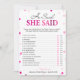 Dit moderne bingospel heeft een roze magenta achtergrond met metalige confetti. De tekst is geschreven in een mix van een speels kalligrafielettertype en een modern serif-lettertype. Deze kaart is gepersonaliseerd met de naam van de aanstaande bruid en de datum van de bruidsuitnodiging.
