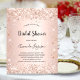 Voor een elegante bruidsdouche. Een roze gouden namaak metalen uitziende achtergrond. Versierd met roze gouden, roze namaak glitters. Personaliseer en voeg de naam van de aanstaande bruid en feestdetails toe. De naam en de tekst: Bruidsdouche zijn geschreven in een handgeschreven lettertype script