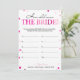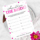 Dit moderne "How Old Was the Bride"-spel heeft een roze magenta achtergrond met metalige confetti. De tekst is geschreven in een mix van een speels kalligrafielettertype en een modern serif-lettertype. Deze kaart is gepersonaliseerd met de naam van de aanstaande bruid en de datum van de bridal shower.