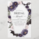 Uitnodigingen voor bruiloft op een budget Halloween 31 oktober Herfst Donker Waterverf Donkerpaars op paarse achtergrond - inclusief griezelige en elegante script typografie met moderne bloemen en vleermuisvleugels voor de speciale dag van de aanstaande bruid, inclusief Creepy Bride to Be.