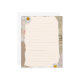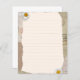 Mooie notities pagina in beige en bruine kleuren, versierd met daisy bloesems en postzegels op de achtergrond. Vul de regels met je eigen notities of een andere tekst.