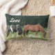 Bruin en zwart paard naast elkaar in open veld met grastekst kunnen worden aangepast