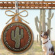 Bruin Groen Western gestikte lederen cactus Huisdierpenning