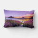 Bruin houten dok tussen lavendel bloemenveld kussen