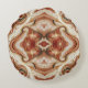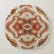 Dit is een rond kussen met een bruin type marmer met goudkleurige rand.