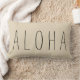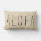 Onze tropische typografische kussen in roze en donkerzwarte letters in een Aloha Hawaiian groet in donkergrijs-blauwe letters zijn perfect voor je kamer.