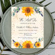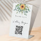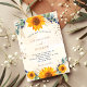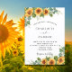 Een witte achtergrond versierd met zonnebloemen, eucalyptusgroen en gouden bladeren en kunstmatig goudglitterstof. Met de tekst: Dank u wel. Personaliseer en uw namen.