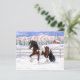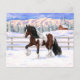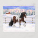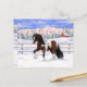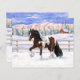 Bruine baai met zigeunerbanner ontwerppaard in sneeuw