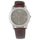 Dit horloge van mannen heeft een geometrisch ontwerp van een soort vlakke eicellen die over het ontwerp in bleek blauw op een gebied van bruin herhalen.