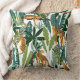 Bruine vlekken luipaard in tropische weelderige bladeren en planten collage. Cool kussens ontwerp.