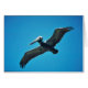 Bruine pelikaan tijdens de vlucht