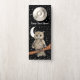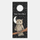 Deze papieren deurhanger heeft een bruine uil zittend op een boomtak met een blauw ketting in een zwarte nachtelijke hemel met witte sterren en halve maan. Pas jouw tekst aan de voor- en achterkant aan met de sjabloon.