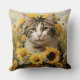 BRUINE & WITTE TABBY KAT MET ZONNEBLOEMEN KUSSEN