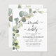 Budget Brunch en Bubbly Eucalyptus Groen Succulent Botanische Waterverf Emerald Green Spring Wedding Vrijgezellenfeest QR Code Invitations op een witte achtergrond - bevat prachtige en elegante scripttypografie met moderne botanische bladeren en groen voor de speciale bruid om te vieren.