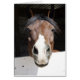 Een bruin en wit paard met een zwarte mane die naar je kijkt van binnen in een schuur. Deze liefdevolle en vriendelijke paarden zullen zeker een glimlach op het gezicht van de paardenliefhebber in je leven brengen. Hoesje is verstoken van tekst. Blanco binnenin en klaar voor uw persoonlijke aanraking.