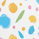 Dit kunstwerk heeft een speels en vrolijk patroon van veelkleurige bubbels en confetti-achtige vormen verspreid over een witte achtergrond. Het ontwerp bevat felle tinten blauw, roze, geel, groen en sinaasappel, waarbij elke bel en stip wordt weergegeven met een zacht, glanzend effect dat ze een zwevend, driedimensionaal uiterlijk geeft. De onregelmatige vormen en gevarieerde afmetingen van de elementen voegen een gevoel van spontaniteit en plezier toe, waardoor een levendige en luchtige compositie ontstaat die vreugde en energie uitstraalt.
