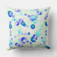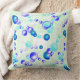 Dit werpkussen cadeaus een abstracte weergave van bubbels tegen een wit doek met een neon-cyaan vierkante lijn overlay, het creëren van een boeiende visualisatie.