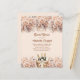 Een stijlvolle en glamoureuze uitnodiging voor een Vrijgezellenfeest. Crème, perzikkleurige achtergrond, versierd met een mand met fluiten, mousserende wijnflessen en beige, crèmekleurige bloemen. Personaliseer en voeg uw partijgegevens toe. 1 vel = 1 uitnodiging afgedrukt rand tot rand.