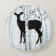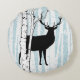 Dit hertenontwerp rond kussen is ideaal voor iedereen die houdt van herten, dieren, wilde dieren en leuke design! Beschikt over een berkenboombos aan elke kant met blauwe lucht tussen de witte berk, kussenvoorkant heeft een zwart silhouet doe, achterkant heeft een zwart silhouet bok! Dit hertenkussen is perfect voor de woonkamer, het hol, de familiekamer, de familiecabine op het meer, en natuurlijk maakt het een groot geschenk.