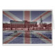 Buckingham Palace, woonachtig voor koningin Elizabeth II en koningin Victoria standbeeld, zwart-wit en de vakbond Jack Flag