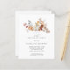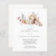 Moderne en elegante witte pompoen en herfst bloemenontwerp. Het zacht waterverf palet is een verfijnde mix van zacht roze en donkerrijk goudgeel en bruin. De herfstbladeren omringen de witte pompoen voor een speciale herfstvertoning. Perfect voor je herfst verjaardagsfeestje.