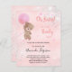 Voor een baby shower dat een baby-koor viert. Een roze faux metallische achtergrond, met faux zilveren glitterstof. Een teddybeer met een roze ballon. Pas de naam van de moeder aan en partijdetails aan en voeg deze toe. Oh Baby! en Bearly worden geschreven met een handgeschreven stijlscript.