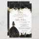Budget Elegant Black Gold Floral Princess Quinceañera Quince uitnodiging