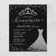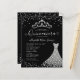Modern Glam Black Silver Diamond Tiara Princess Gown Dress Glitter Confetti Sparkle 15th Birthday Quinceanera Invitation